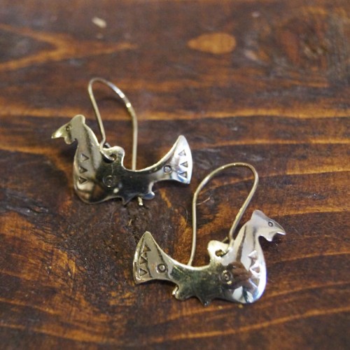 Auskari, roku darbs, misiņš. Augstums 3 cm.